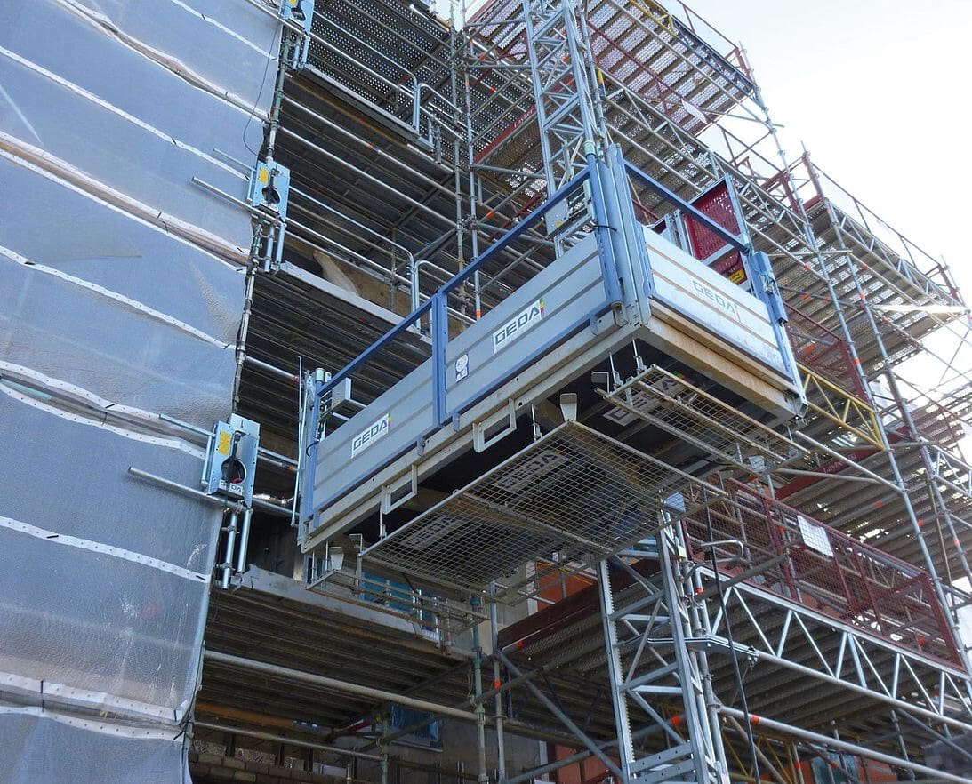 Monte-matériaux à plateforme accessible, plateformes de transport & ascenseurs de chantier : utilisation